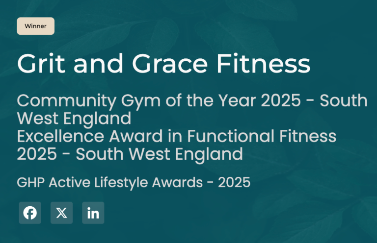 Grit and Grace Fitness has proudly won two honours at the GHP Active Lifestyle Awards 2025: Community Gym of the Year and the Excellence Award in Functional Fitness for South West England.